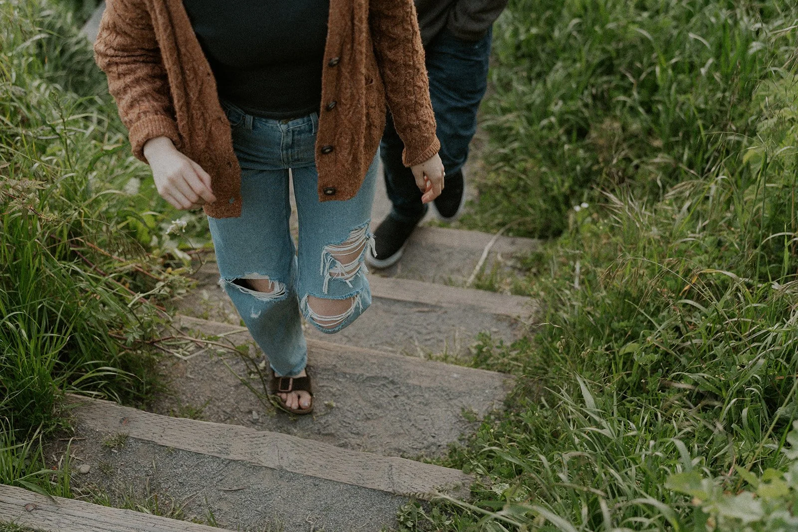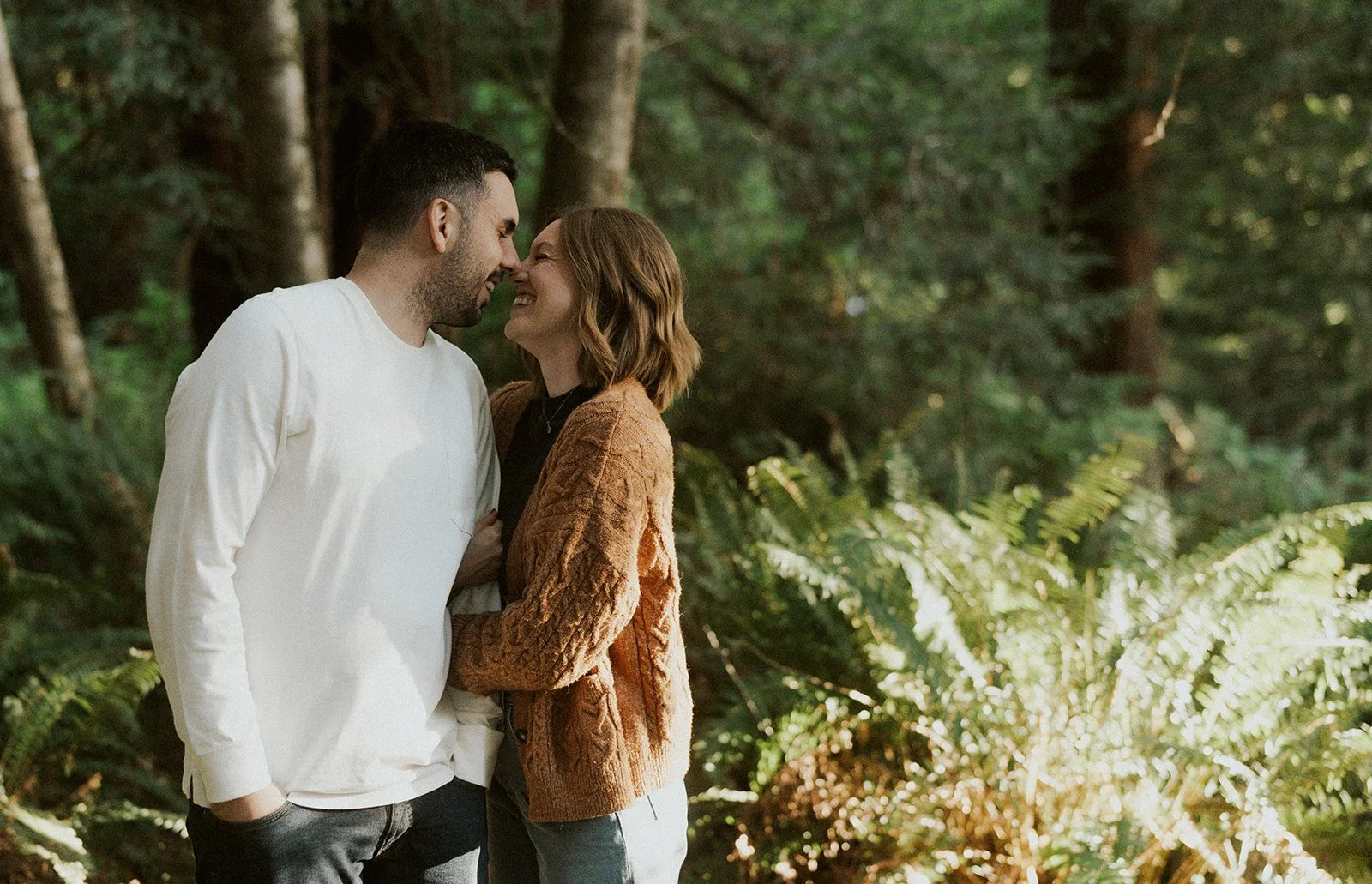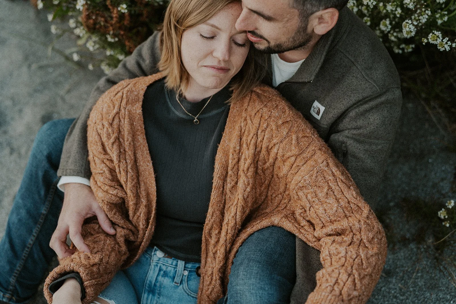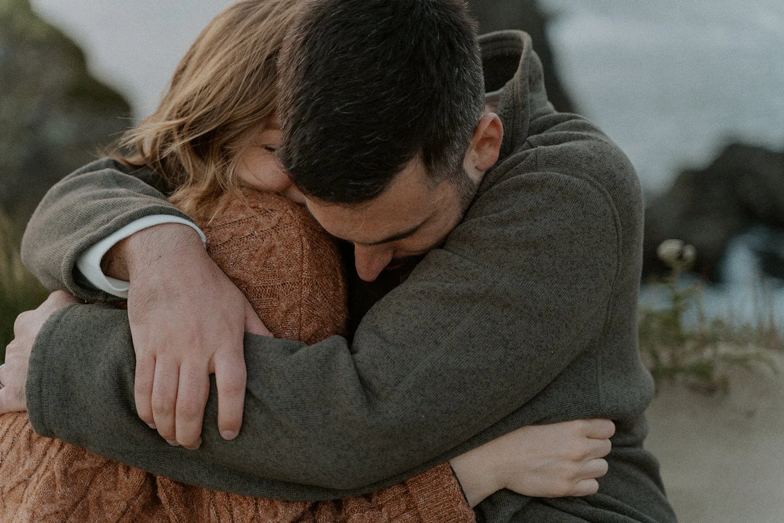 I typically look for a location that has a variety of backgrounds or settings for the shoot. In this case I was able to find forest, beach, rocky cliff sides filled with wildflowers, and coastal greenery. This provides an ample amount of different shots for the session, making the final gallery one that captures both the couple and the environment in new and creative ways.